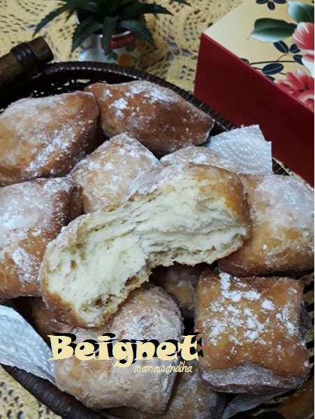 Resepi ini sangat-sangat jarang tular di FB maupun blog. Padahal ianya sangat mudah disediakan lebih kurang resepi donut, churros, creampuff dan yang seangkatan dengannya. Mengikut tulisan Sariyusa dalam blognya, BEIGNET disebut Bei-nei adalah sejenis dessert yang enak dimakan ketika masih panas dan terkenal di kalangan penduduk di New Orleans. MaDiHaA terpandang Sariyusa pos sajian ini di blog terus jatuh hati nak mencuba. Sebabnya resepinya ringkas & mudah disediakan. Suami & anak2 pun suka... makan panas2 memang syok...